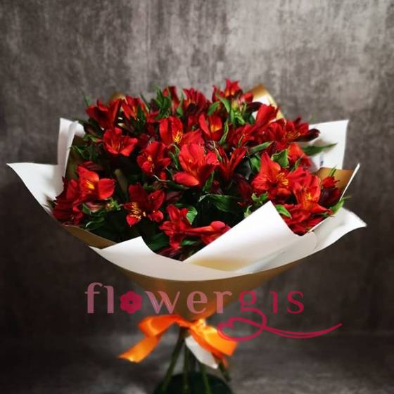 Для Любителей прекрасных Альстромерий, особенного яркого цвета, мы предлагаем такую вот вариацию, с возможностью добавления цветов или наоборот сделать поменьше, но хотим сразу сказать, красота букета от этого не меняется, ведь он настолько прекрасен, что его заказывают снова и снова